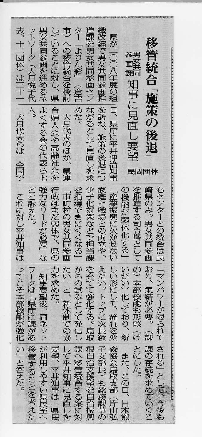 民間団体は「施策の後退」と知事に見直し要望